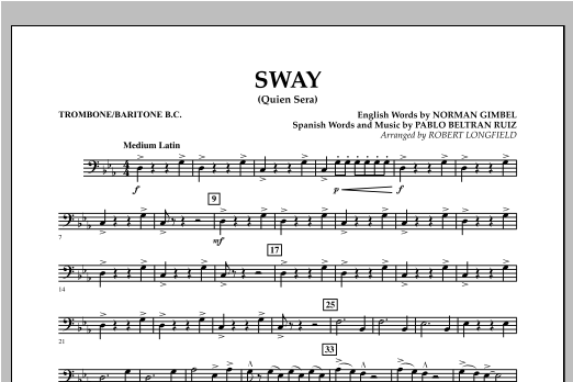 Noten von Michael Buble für Big Band: Sway (Quien Sera) ist hier von Robert Longfield als Medium Latin arrangiert. Leicht spielbare Fassung mit einer Reihe interessanter Percussion Parts.