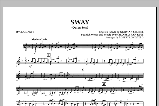 Noten von Michael Buble für Big Band: Sway (Quien Sera) ist hier von Robert Longfield als Medium Latin arrangiert. Leicht spielbare Fassung mit einer Reihe interessanter Percussion Parts.