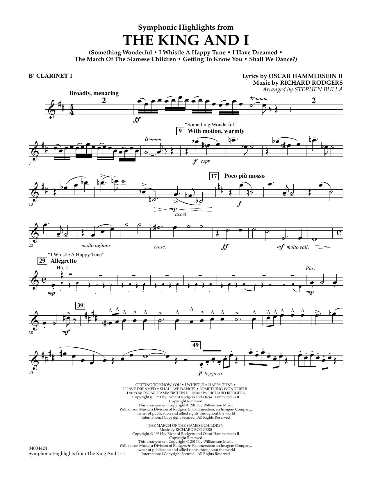 Opening on Broadway in 1951, and garnering multiple awards for the 2015 revival, few musicals can boast as many lasting and memorable songs as this Rodgers and Hammerstein masterpiece. Drawing on the classic orchestrations by Robert Russell Bennett, here is a fabulous medley for the symphonic stage. Includes: Something Wonderful, I Whistle a Happy Tune, I Have Dreamed, The March of the Siamese Children, Getting to Know You, and Shall We Dance?