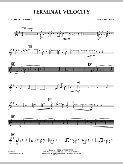 A term used in physics, 'terminal velocity' describes the point at which a falling object ceases to accelerate but continues to fall at a constant velocity. Inspired by the exhilaration of sky diving, this is an exciting and dynamic work for young bands, and fittingly composed all in one constant tempo. Dur: 2:20.
