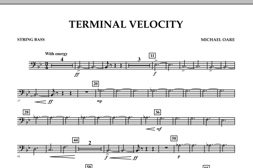 A term used in physics, 'terminal velocity' describes the point at which a falling object ceases to accelerate but continues to fall at a constant velocity. Inspired by the exhilaration of sky diving, this is an exciting and dynamic work for young bands, and fittingly composed all in one constant tempo. Dur: 2:20.