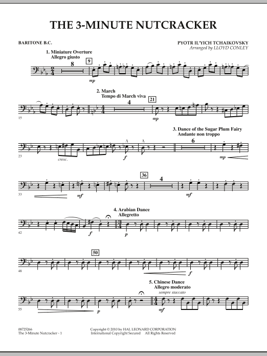 Hier sind alle Ihre Lieblingsthemen aus dem Nussknacker in einem cleveren und fröhlichen Medley zusammengefasst. Um die Spannung zu erhöhen, sollten Sie einen offiziellen Zeitnehmer ernennen und eine große Sanduhr oder eine projizierte digitale Stoppuhr verwenden, damit das Publikum Ihre Fortschritte verfolgen kann, während die Band verzweifelt versucht, unter 3 Minuten zu bleiben! Für den Fall, dass ihr Zeit aufholen müsst, ist am Ende ein Accelerando eingebaut!