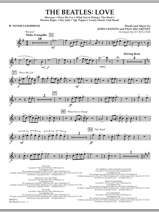 Created by famed Beatles producer George Martin along with his son Giles for the ambitious Cirque du Soleil Las Vegas show spectacular, the album Love utilizes original Beatles recordings recast in new and imaginative settings and mixes. Effectively adapted for the concert stage by Jay Bocook, this terrific medley features Because, Drive My Car, The Word, What You're Doing, Hey Jude and Sgt. Pepper's Lonely Hearts Club Band.