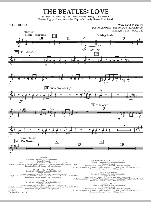 Created by famed Beatles producer George Martin along with his son Giles for the ambitious Cirque du Soleil Las Vegas show spectacular, the album Love utilizes original Beatles recordings recast in new and imaginative settings and mixes. Effectively adapted for the concert stage by Jay Bocook, this terrific medley features Because, Drive My Car, The Word, What You're Doing, Hey Jude and Sgt. Pepper's Lonely Hearts Club Band.