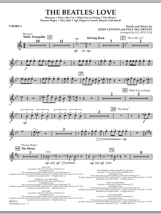 Created by famed Beatles producer George Martin along with his son Giles for the ambitious Cirque du Soleil Las Vegas show spectacular, the album Love utilizes original Beatles recordings recast in new and imaginative settings and mixes. Effectively adapted for the concert stage by Jay Bocook, this terrific medley features Because, Drive My Car, The Word, What You're Doing, Hey Jude and Sgt. Pepper's Lonely Hearts Club Band.