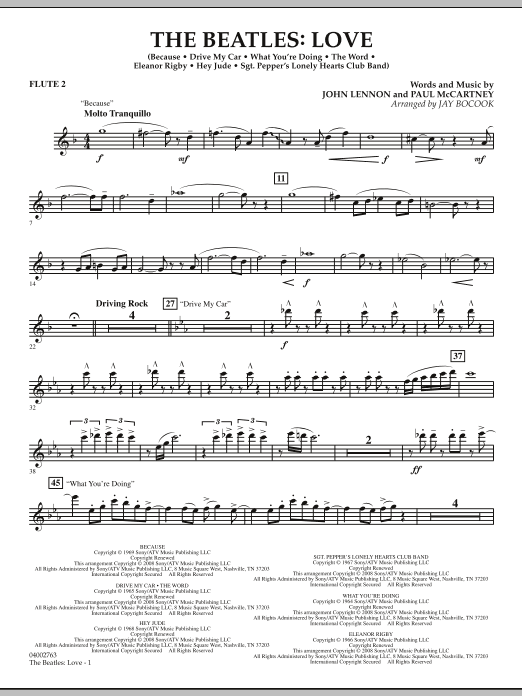 Created by famed Beatles producer George Martin along with his son Giles for the ambitious Cirque du Soleil Las Vegas show spectacular, the album Love utilizes original Beatles recordings recast in new and imaginative settings and mixes. Effectively adapted for the concert stage by Jay Bocook, this terrific medley features Because, Drive My Car, The Word, What You're Doing, Hey Jude and Sgt. Pepper's Lonely Hearts Club Band.