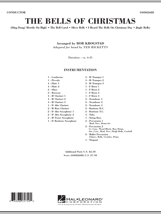 Based on traditional holiday favorites, but loaded with a creative mix of styles and treatments, here is an outstanding production number for winter concerts. Based on Bob Krogstad's original version for full orchestra, Ted Ricketts has masterfully adapated this for concert band. Includes: Ding Dong! Merrily on High!, Carol of the Bells, Silver Bells, I Heard the Bells on Christmas Day and Jingle Bells. Dur: 6:45