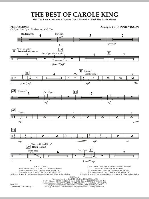Carole King practically owned the radio airwaves in the early '70s with her easy flowing songs and heartfelt performances. This medley of mega-hits includes I Feel the Earth Move, It's Too Late, You've Got a Friend, and Jazzman.