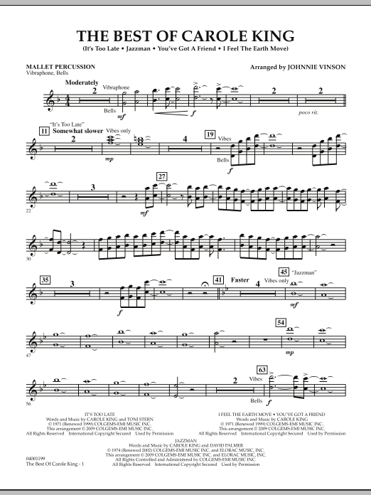 Carole King practically owned the radio airwaves in the early '70s with her easy flowing songs and heartfelt performances. This medley of mega-hits includes I Feel the Earth Move, It's Too Late, You've Got a Friend, and Jazzman.