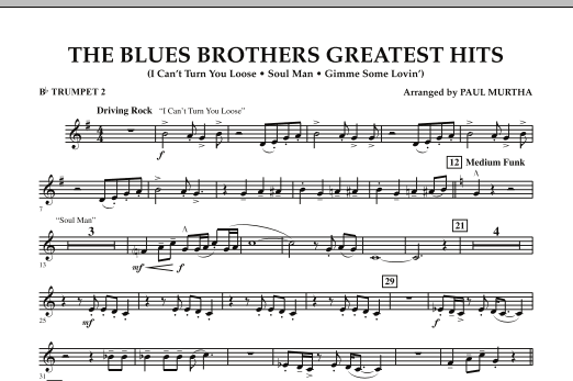 Hier sind die charakteristischen Melodien der unverwüstlichen und stets beliebten Blues Brothers. Paul Murthas knallhartes Medley enthält I Can't Turn You Loose, Soul Man und Gimme Some Lovin'.