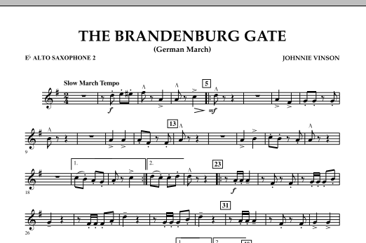 Heralded by a fanfare-like figure for trumpets in the first strain, here is an appealing German-style march solidly scored for young players. Low brass take the lead on the second strain, followed by a contrasting lyrical section featuring the woodwinds. The full ensemble brings us to a rousing finish in this terrific-sounding march. (This is a nice follow-up to Johnnie's earlier international marches St. Petersburg March, New Forest March and The Crown of Castile.)