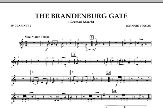 Heralded by a fanfare-like figure for trumpets in the first strain, here is an appealing German-style march solidly scored for young players. Low brass take the lead on the second strain, followed by a contrasting lyrical section featuring the woodwinds. The full ensemble brings us to a rousing finish in this terrific-sounding march. (This is a nice follow-up to Johnnie's earlier international marches St. Petersburg March, New Forest March and The Crown of Castile.)