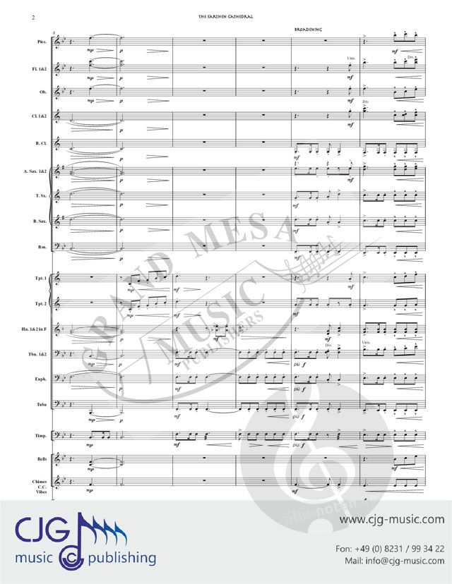 Inspired by Mount Princeton, one of the 14,000-foot mountains visible from Buena Vista, Colorado, the composer has captured a sense of awe and dignity in this very original band work. Hatfield uses two basic motifs, one melodic and one rhythmic (first presented in brass and timpani as an introductory figure) to paint his austerely beautiful musical portrait of one of the earth's gems. Like shifting views of the mountain, the rhythmic nature of this profound band work slowly shifts to reveal different aspects of the thematic materials, and your players and audience will be left awed and inspired by this lofty band work!