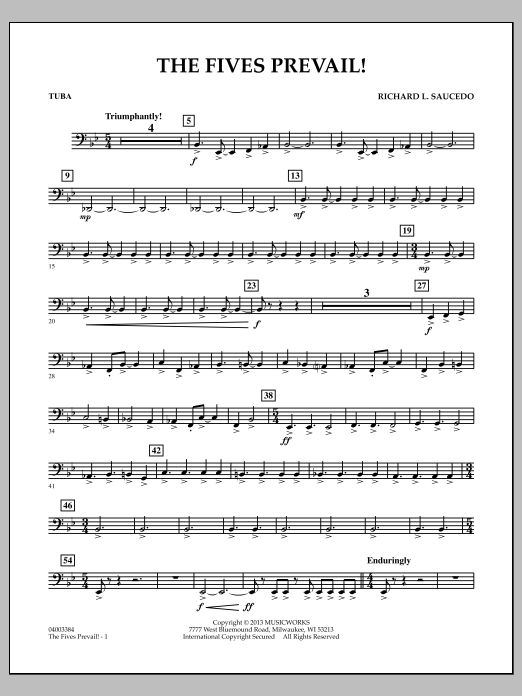 As implied by the title, the meter of 5/4 is an important structural component of this creative and energetic work for band. After the intense opening statement, a brief lyric and calm middle section builds to a full ensemble climax before returning to the fast main theme. Blending extended jazz-like harmonies with an exciting rhythmic drive, this piece is sure to stir the interest of players and listeners alike. Dur: 4:25