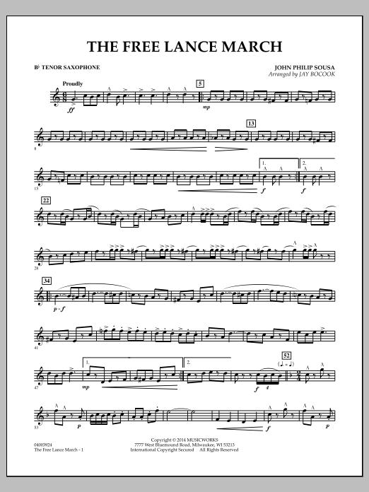 Composed in 1905, this classic and sophisticated march by John Philip Sousa is unique from the standpoint of opening in 6/8, then switching to 2/4 midway. Jay Bocook has skillfully adapted this distinctive march for contemporary ensembles. Dur: 4:00.