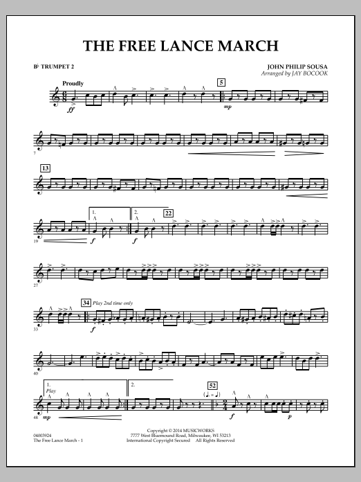 Composed in 1905, this classic and sophisticated march by John Philip Sousa is unique from the standpoint of opening in 6/8, then switching to 2/4 midway. Jay Bocook has skillfully adapted this distinctive march for contemporary ensembles. Dur: 4:00.