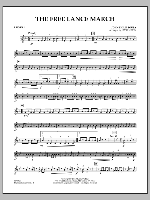 Composed in 1905, this classic and sophisticated march by John Philip Sousa is unique from the standpoint of opening in 6/8, then switching to 2/4 midway. Jay Bocook has skillfully adapted this distinctive march for contemporary ensembles. Dur: 4:00.