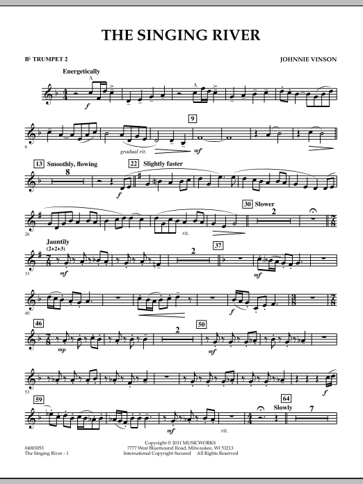 In the Shoals region of northwest Alabama, the Tennessee River is often referred to as the singing river, a term originating with the Yuchi tribe of Native Americans. Commissioned by the Shoals Area Band Directors Association, Johnnie Vinson has created an effective work for band that focuses on the river's relationship to life in this area both past and present. A primary river theme is stated from which a series of variants creates a fascinating and appealing musical tapestry. Dur: 5:40.