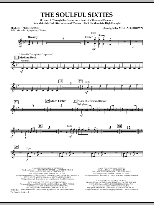 The music of the '60s was just about as diverse as musically imaginable. And in the midst of it all, Motown continued to crank out hit after hit of catchy rhythm-based tunes. Here is a medley that is sure to be enjoyed by all ages that includes: I Heard It Through the Grapevine, Land of a Thousand Dances, (You Make Me Feel Like) A Natural Woman and Ain't No Mountain High Enough.
