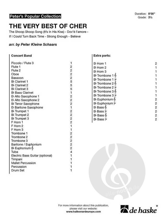 Lassen Sie sich von Chers mitreißender Energie verzaubern – mit einem strahlenden Pop-Medley, arrangiert von dem renommierten Peter Kleine Schaars, einer bekannten Größe in der Welt der Blasmusik.