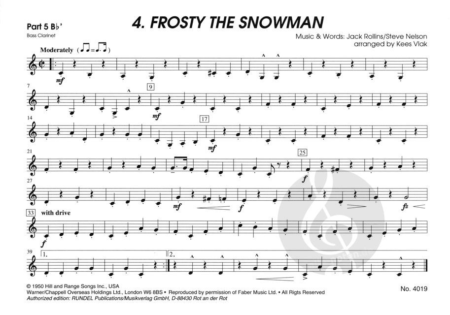 Eine Sammlung mit 12 internationalen Weihnachtsliedern (+ ad lib. Percussion, Keyboard). Flexible 5-stimmige Besetzung für Klarinetten-Ensemble, Holzbläser-Ensemble, Saxophon-Ensemble, Blechbläser-Ensemble, Fanfare-Orchester (+ BeNeLux-Stimmen), Blasorchester oder Brass Band. Inhalt: 01. Feliz Navidad 02. Rudolph, the red-nosed Reindeer 03. Let it Snow 04. Frosty the Snowman 05. Jingle-Bell Rock 06. Last Christmas 07. Sleigh Ride 08. Santa Claus is Coming to Town 09. I Saw Mommy Kissing Santa Claus 10. Winter Wonderland 11. The Most Wonderful Time of the Year 12. White Christmas
