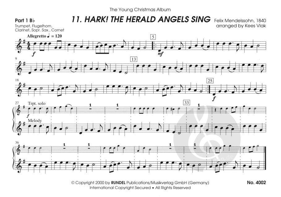 - Einzelstimme Instrument in B 1, Trompete, Kornett, Flügelhorn, Klarinette und Sopransaxophon