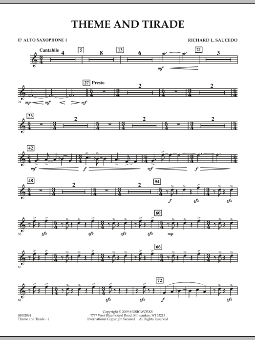 The opening of this unique work features a gentle and serene theme traded between clarinet, oboe and trumpet soloists played over a lush harmonic background. The mood shifts abruptly, however, as the tirade begins! A predominant timpani pattern helps propel this section through a series of angular passages, driving rhythmic figures, a jazz-tinged clarinet solo, and ultimately blossoming into a triumphant and glorious conclusion. Dur: 3:30 (Grade 3-1/2)