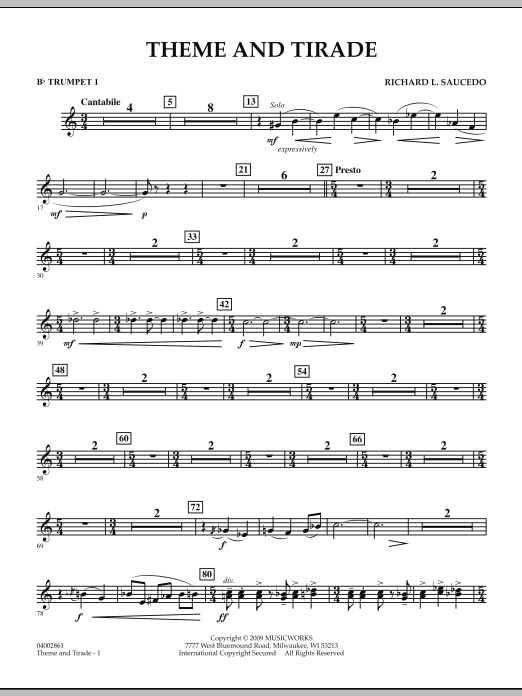 The opening of this unique work features a gentle and serene theme traded between clarinet, oboe and trumpet soloists played over a lush harmonic background. The mood shifts abruptly, however, as the tirade begins! A predominant timpani pattern helps propel this section through a series of angular passages, driving rhythmic figures, a jazz-tinged clarinet solo, and ultimately blossoming into a triumphant and glorious conclusion. Dur: 3:30 (Grade 3-1/2)