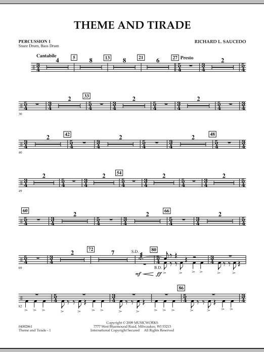 The opening of this unique work features a gentle and serene theme traded between clarinet, oboe and trumpet soloists played over a lush harmonic background. The mood shifts abruptly, however, as the tirade begins! A predominant timpani pattern helps propel this section through a series of angular passages, driving rhythmic figures, a jazz-tinged clarinet solo, and ultimately blossoming into a triumphant and glorious conclusion. Dur: 3:30 (Grade 3-1/2)