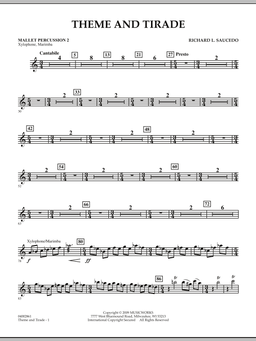 The opening of this unique work features a gentle and serene theme traded between clarinet, oboe and trumpet soloists played over a lush harmonic background. The mood shifts abruptly, however, as the tirade begins! A predominant timpani pattern helps propel this section through a series of angular passages, driving rhythmic figures, a jazz-tinged clarinet solo, and ultimately blossoming into a triumphant and glorious conclusion. Dur: 3:30 (Grade 3-1/2)