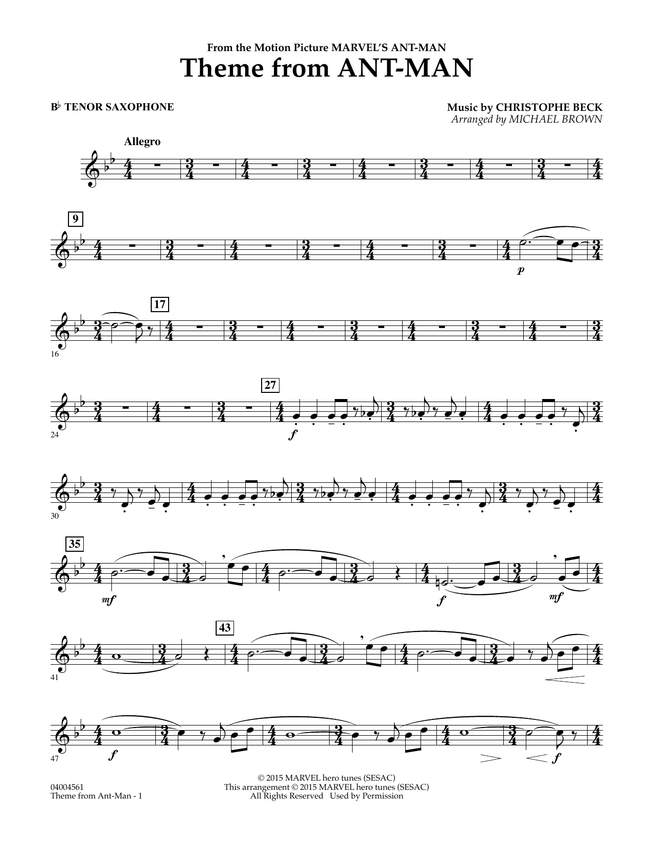From the 2015 blockbuster Marvel's Ant-Man, Christophe Beck's main theme is delightfully dark and ominous. This skillfully arranged version for the concert stage brings all the drama of the original to life.