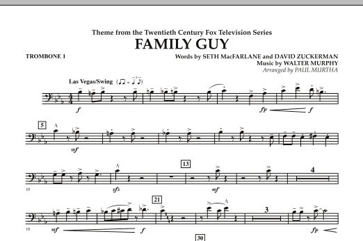 From the wildly popular animated TV series Family Guy comes this swinging and thoroughly enjoyable theme. Solidly scored in the style of a Las Vegas show band, this is sure to be a hit with all audiences.