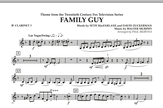 From the wildly popular animated TV series Family Guy comes this swinging and thoroughly enjoyable theme. Solidly scored in the style of a Las Vegas show band, this is sure to be a hit with all audiences.