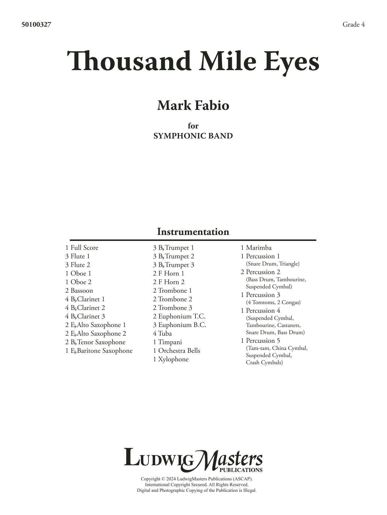 A tone poem depicting the extreme emotions and complicated lives of soldiers in Vietnam, Thousand Mile Eyes by Mark Fabio is one of deep emotional impact. It vividly portrays the hardships of the Vietnam experience for a generation of young soldiers. (6:00)