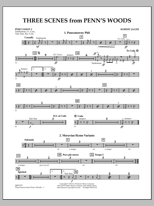 Referring to the founder of Pennsylvania, William Penn, this suite of three appealing settings reflects on the origins and character of this state. The suite opens with the lighthearted 6/8 setting Punxsutawny Phil. Next is Moravian Hymn Variants which is solemn and rich-sounding, but with a brief spirited middle variation. Independence Hall concludes this well-written work in a stately and majestic style.