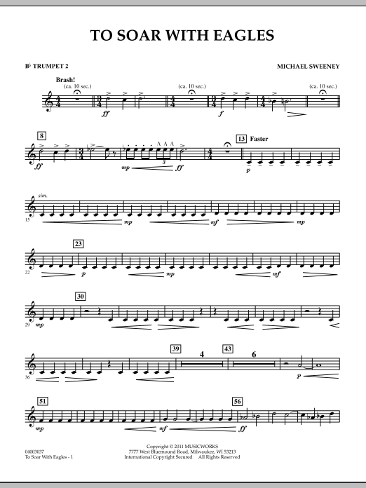 In this dynamic multi-style overture for band, Michael Sweeney opens with stark percussive hits, brass fanfares, and swirling woodwind effects. A fast tempo and long build follows, using non-traditional harmonies and overlapping layers of sound, climaxing with a majestic, soaring statement by the entire ensemble. The slower middle section features a solo flute accompanied by rich sonorities and counterlines. The fast tempo returns initiated by the percussion section and then recurring earlier themes as the pieces drives to a satisfying finish. With variety and pacing, this is a perfect choice for contest or festival. Dur: 5:20.