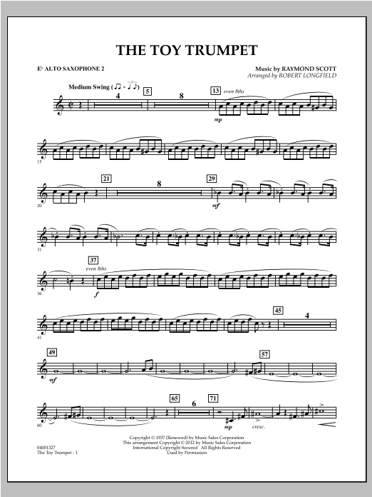 Composer Raymond Scott is known for compositions that were adapted for the classic Looney Tunes cartoons. One of his signature tunes, The Toy Trumpet, was famously sung by Shirley Temple in the 1938 film Rebecca of Sunnybrook Farm, and ersions by The Boston Pops and Al Hirt are classics. Perfect for a holiday concert or any pops event, this lighthearted arrangement featuring trumpet solo and section is sure to be enjoyed by all.