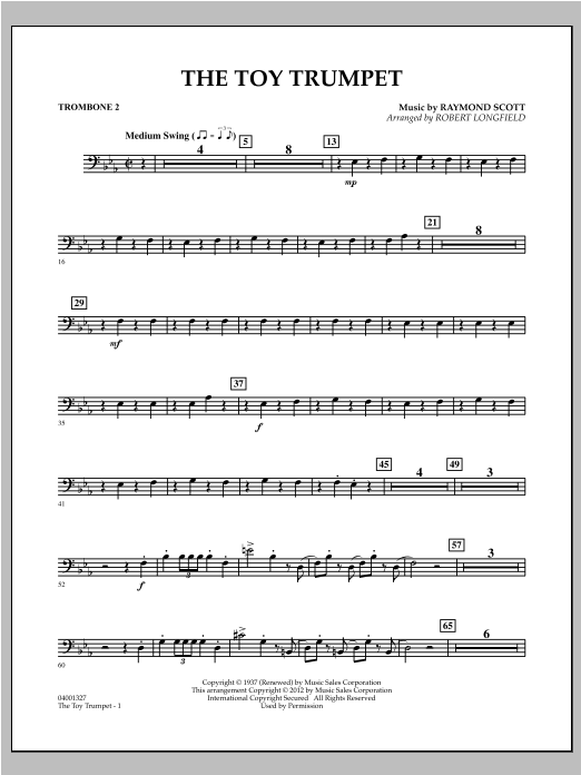 Composer Raymond Scott is known for compositions that were adapted for the classic Looney Tunes cartoons. One of his signature tunes, The Toy Trumpet, was famously sung by Shirley Temple in the 1938 film Rebecca of Sunnybrook Farm, and ersions by The Boston Pops and Al Hirt are classics. Perfect for a holiday concert or any pops event, this lighthearted arrangement featuring trumpet solo and section is sure to be enjoyed by all.