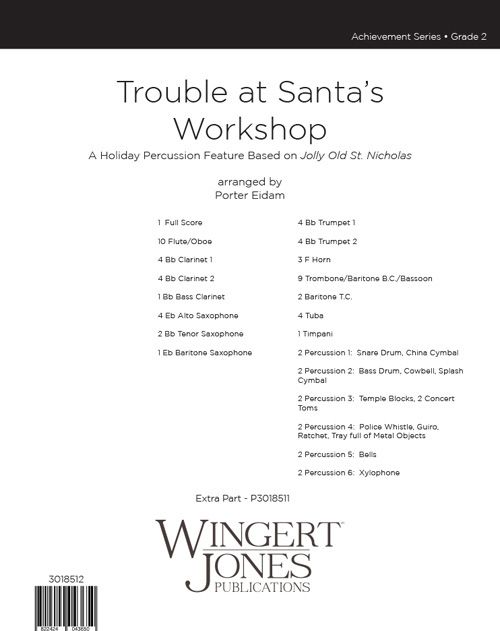 Der Weihnachtsmann hat eine neumodische Spielzeugmontagemaschine gekauft, und die Elfen wurden beauftragt, dieses Ungetüm am Laufen zu halten! Die Perkussionsgruppe steht im Mittelpunkt, wenn sie dieses Gerät darstellt, das trotz der verzweifelten Bemühungen der frustrierten Elfen, es am Laufen zu halten, immer wieder kaputt geht. Das Lieblingslied Jolly Old St. Nicholas (mit einer kleinen Anspielung auf Herrn Pachelbel) ist der musikalische Klebstoff, der dieses amüsante Weihnachtsabenteuer zusammenhält. Viel Spaß!