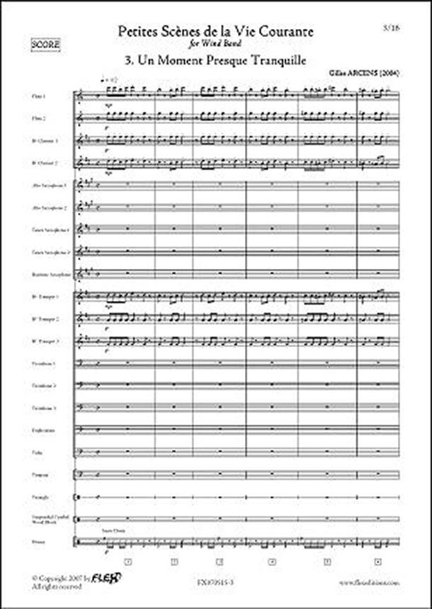 Simple, those pieces are entertaining and humorous. Their title give easily an indication of the character to give while playing them. Except ' Le Debut... ' that should be played at the start, and ' ... Et la FIN ' at the end, I let the Conductor free to define the order in which to play the central Pieces: ' L'Heure de Pointe ' (The rush hour), ' Un Moment Presque Tranquille ' (An almost quiet moment), and ' Le Voyage en Train ' (The train trip).