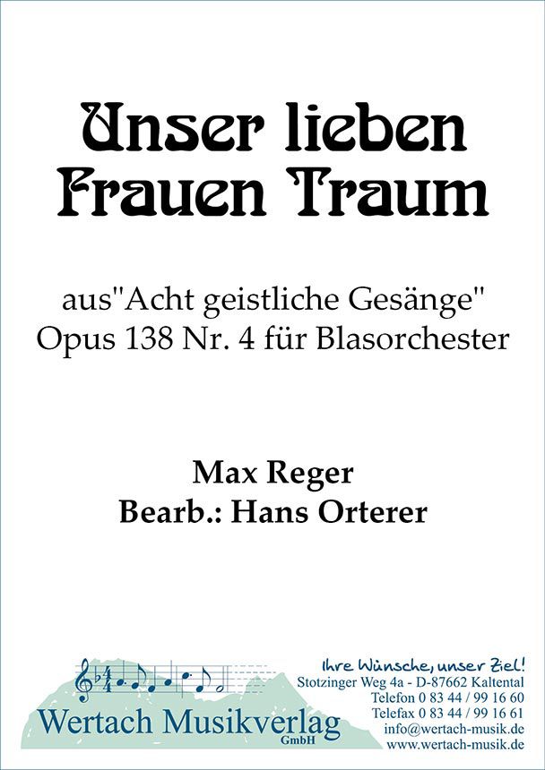 Max Reger, eigentlich Johann Baptist Joseph Maximilian Reger, schuf dieses sechsstimmige Lied als Bestandteil seiner Acht geistlichen Gesänge (Opus 138). Hans Orterer, als langjähriger Chorsänger seit Jahrzehnten von der Melodik und Harmonik dieses Liedes fasziniert, hat mit dieser Ausgabe eine Blasorchesterfassung geschaffen, welche dem Klang eines Chores nachempfunden ist.