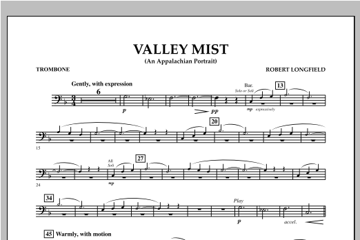 Inspired by the mountains of West Virginia, Valley Mist portrays a beautiful scene of cloud-like mist as it flows gently around the hills encompassing the entire valley in an atmosphere of peace and tranquility. Quoting the Appalachian folk song 'Down in the Valley', this sensitively scored work includes an optional gentle rain effect with the use of finger snaps. Sure to be an enjoyable change of pace for any program. Dur: 3:35.