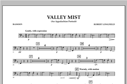 Inspired by the mountains of West Virginia, Valley Mist portrays a beautiful scene of cloud-like mist as it flows gently around the hills encompassing the entire valley in an atmosphere of peace and tranquility. Quoting the Appalachian folk song 'Down in the Valley', this sensitively scored work includes an optional gentle rain effect with the use of finger snaps. Sure to be an enjoyable change of pace for any program. Dur: 3:35.