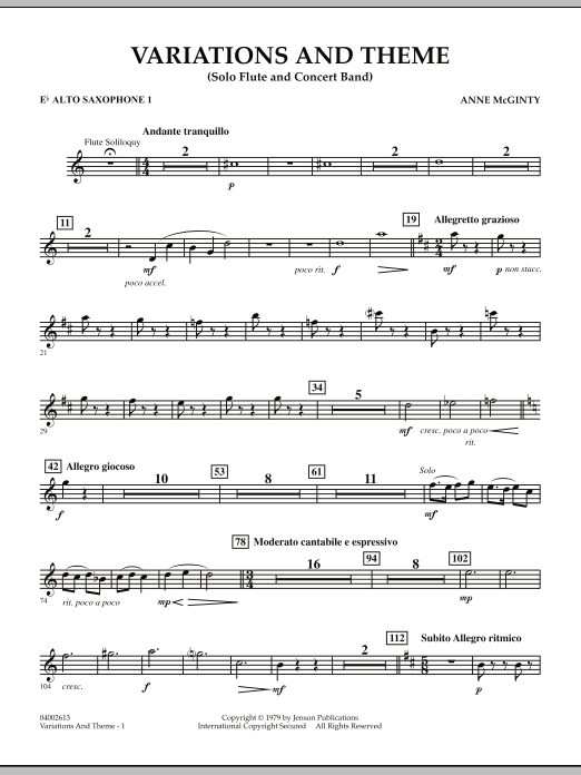 First published in 1979, this masterful work for solo flute and band is available again in this newly engraved edition. The solo part displays a variety of styles from beautifully expressive lyric lines to spirited faster passages, all supported wonderfully by the full ensemble.