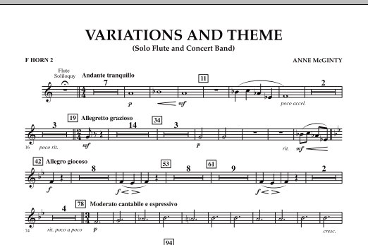First published in 1979, this masterful work for solo flute and band is available again in this newly engraved edition. The solo part displays a variety of styles from beautifully expressive lyric lines to spirited faster passages, all supported wonderfully by the full ensemble.