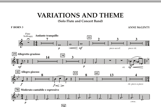 First published in 1979, this masterful work for solo flute and band is available again in this newly engraved edition. The solo part displays a variety of styles from beautifully expressive lyric lines to spirited faster passages, all supported wonderfully by the full ensemble.