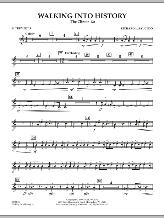 In August 1956, Clinton, Tennessee was the the site of one of the most significant events of the American Civil Rights movement as 12 courageous teenagers walked into history becoming the first students to desegregate a state-supported high school in the south. Commissioned by the East Tennessee School Band and Orchestra Association, Richard Saucedo captures the mood of this monumental event along with its sense of anger and frustration, but also with feelings of hope and determination as the nation struggles to defeat bigotry and fear. Dur: 5:45 (Grade 5)