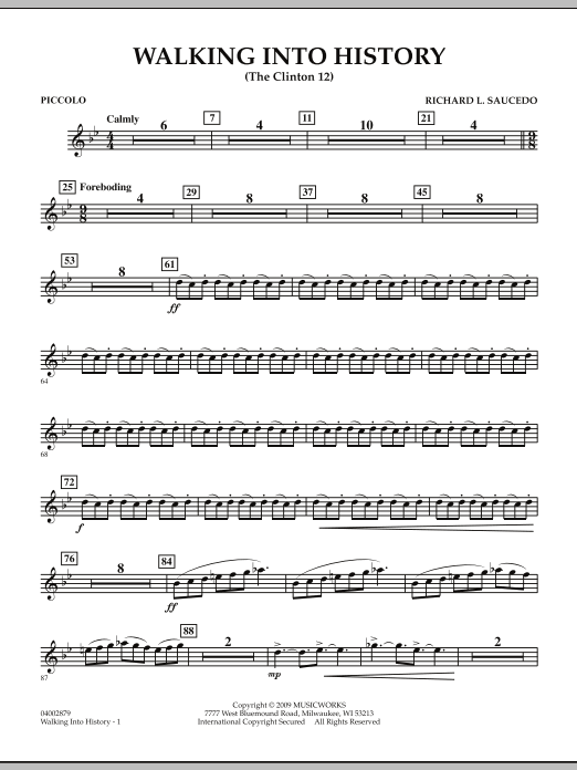 In August 1956, Clinton, Tennessee was the the site of one of the most significant events of the American Civil Rights movement as 12 courageous teenagers walked into history becoming the first students to desegregate a state-supported high school in the south. Commissioned by the East Tennessee School Band and Orchestra Association, Richard Saucedo captures the mood of this monumental event along with its sense of anger and frustration, but also with feelings of hope and determination as the nation struggles to defeat bigotry and fear. Dur: 5:45 (Grade 5)