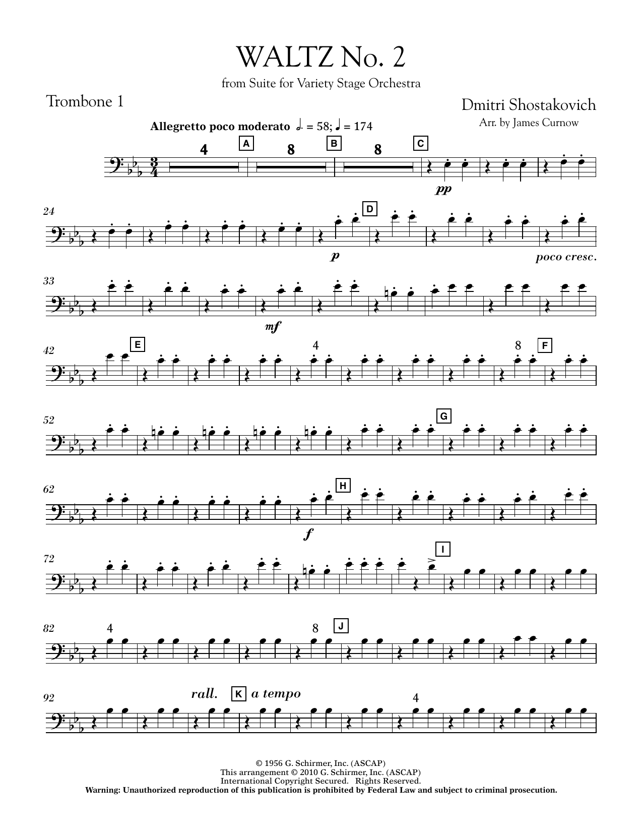 Originally misidentified as the lost Suite for Jazz Orchestra, No. 2, Shostakovich's Suite for Variety Stage Orchestra is notable for the addition of saxophones, accordion and guitar to the typical symphony orchestra instrumentation. The appealing second waltz is in a light classical style and is wonderfully adapted for young concert bands in this arrangement by James Curnow. (Grade 3)