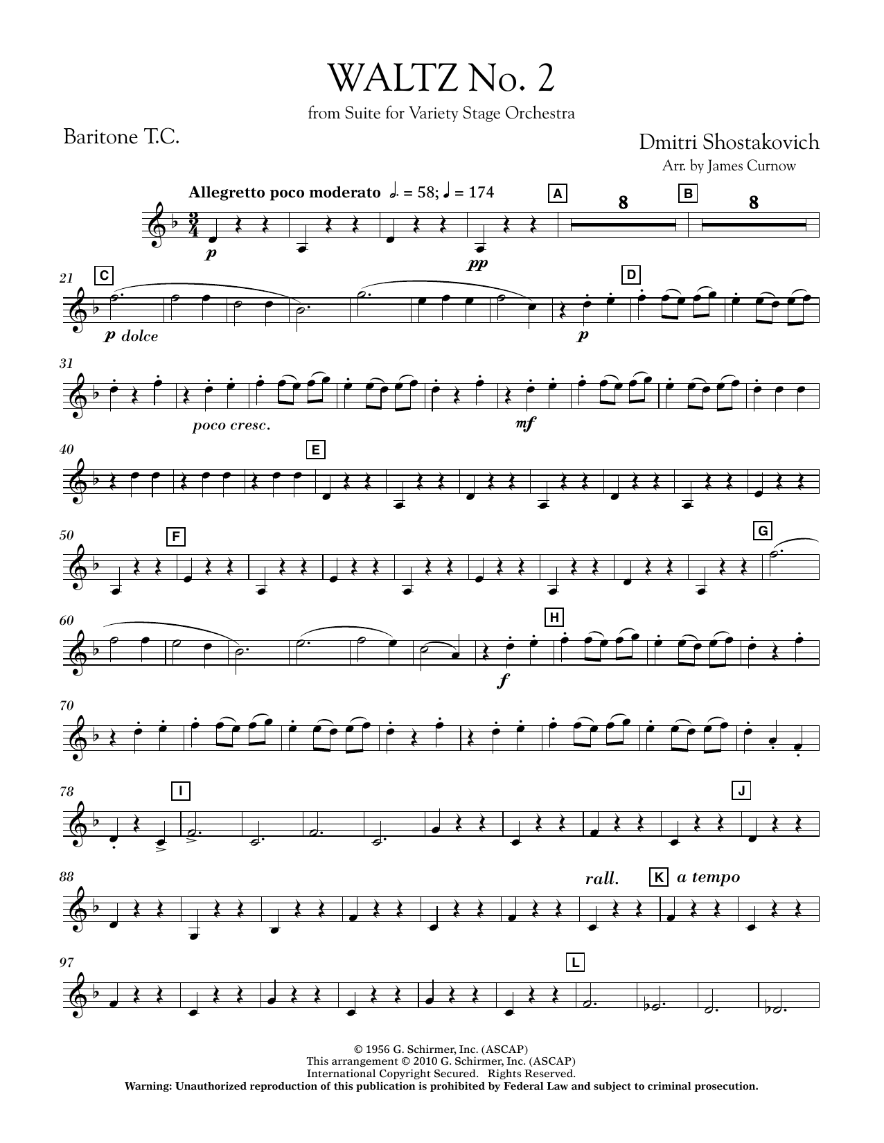 Originally misidentified as the lost Suite for Jazz Orchestra, No. 2, Shostakovich's Suite for Variety Stage Orchestra is notable for the addition of saxophones, accordion and guitar to the typical symphony orchestra instrumentation. The appealing second waltz is in a light classical style and is wonderfully adapted for young concert bands in this arrangement by James Curnow. (Grade 3)